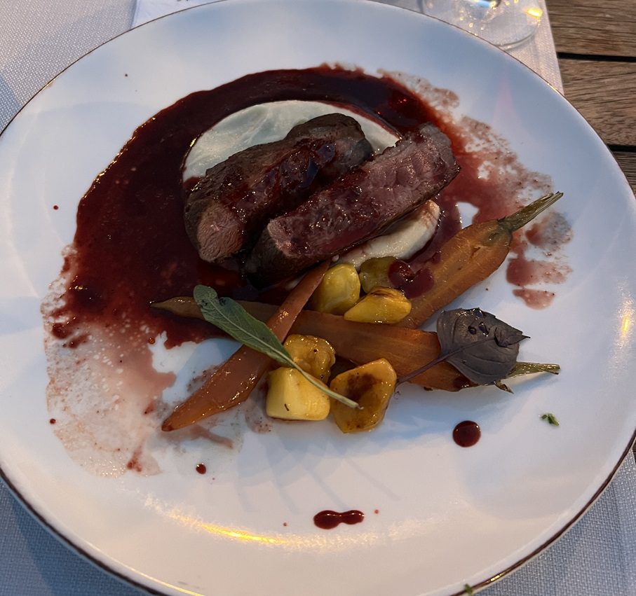 The rose dessert—made with strawberry and rose sorbet, pink pepper, and edible flowers—is particularly memorable.