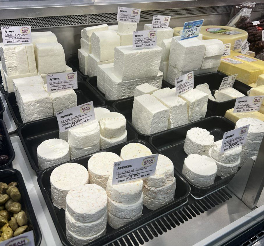 Sirene is religion in Bulgaria. It’s similar to feta but creamier and slightly milder. It’s made from cow’s milk, sheep’s milk, or a combination of both. You’ll find it crumbled over shopska salad and fries, baked into banitsa, or served alongside bread and lyutenitsa, and even scrambled in eggs. The texture is crumbly but moist, and the flavor is tangy with a pleasant saltiness. It’s the backbone of Bulgarian cuisine—nearly every meal involves sirene in some form.