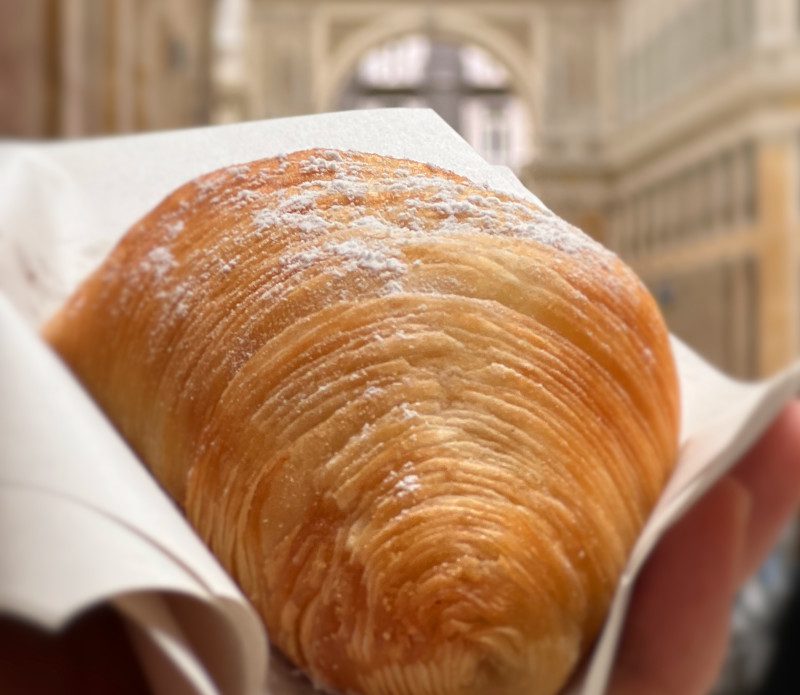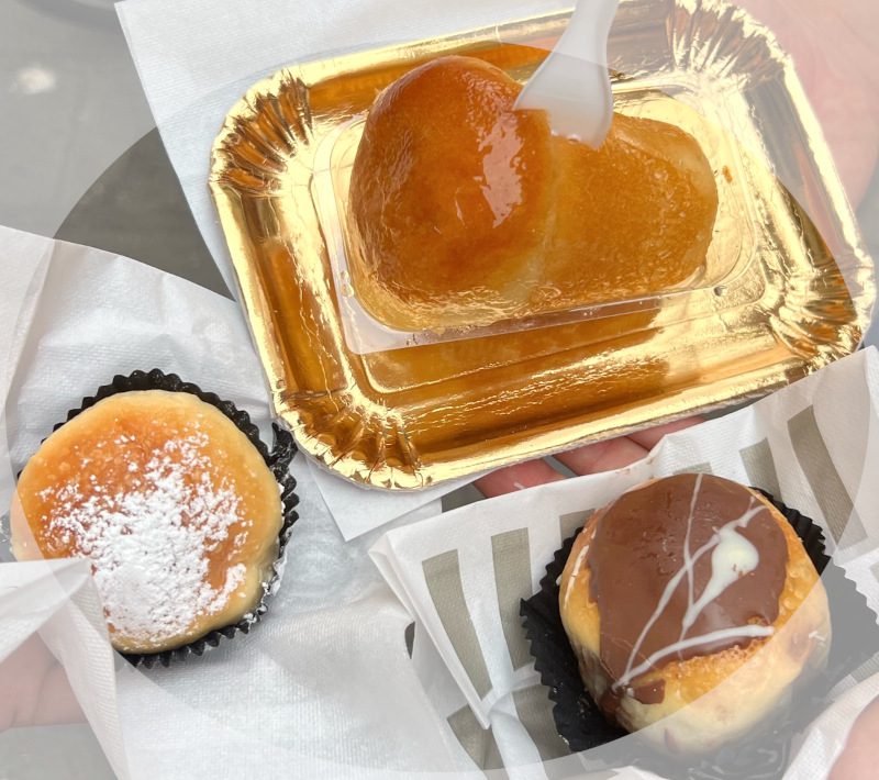 Creme filled brioche sprinkled with powdered sugar makes this my personal favorite of the Neapolitan pastries. The name means snowflake in English due to the dusting of powdered sugar on top. (I can’t decide if I like the traditional or chocolate best so try both!)